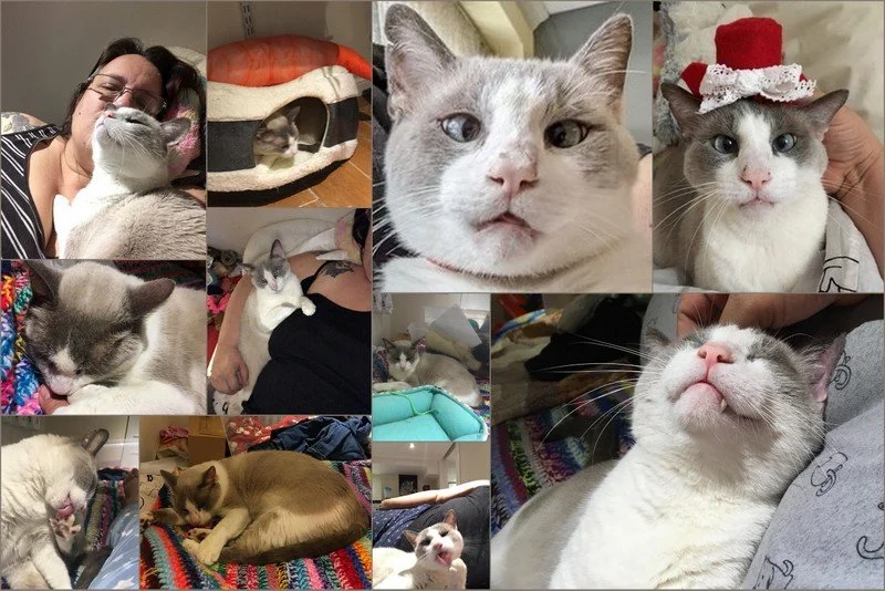 The day was August 30, 2022. On that day, I officially adopted a gorgeous Lilac Point Siamese cat named March. He soon let me know his personality, and his forever-name would be changed to Edward Theodore Remus Meow Meow III, commonly known as Teddy. Very quickly would I learn what an incredibly large heart he had, as I broke my ankle two weeks later. I think he could tell that his forever mama was in pain, other than the tears, and all he wanted to do was to be near me. Together we worked through his medical issues and found food that worked well for his digestive system. Unfortunately, that food made him gain weight – but it didn’t inhibit his love for play, cuddles, and jumping on the bed to snuggle with me. He didn’t get many treat binges because he had put on weight, but every now and then I would relent and he would be offered a little cheese tax, or some temptations treats when his brother Casper would have some. Teddy on catnip = free entertainment. The rolling around, the 'mratting', the pawing at nothing in the air.